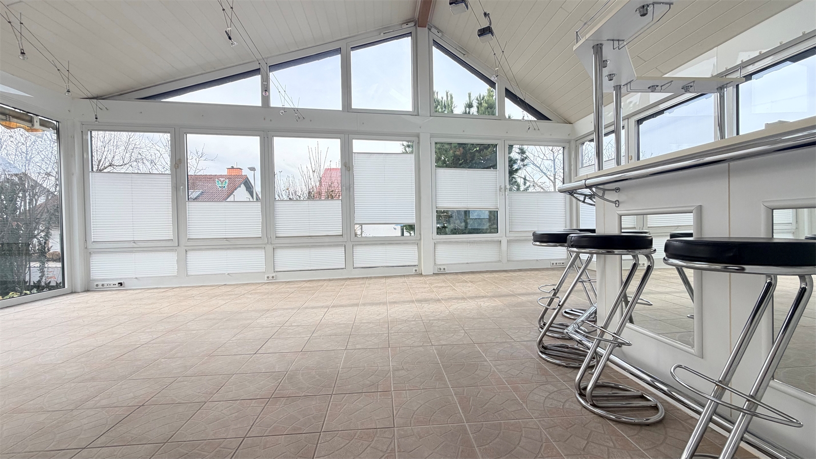 In einer ruhigen und friedlichen Umgebung situiert, können Sie hier die Vorteile einer geschützten und entspannten Lebensweise genießen. Der 1999 angebaute, großzügige Wintergarten von ca. 40 m² bietet einen wunderbaren Rückzugsort, um den Wechsel der Jahreszeiten zu erleben und die Natur ins eigene Heim zu lassen. Diese Oase der Ruhe über der Doppelgarage wird sich schnell als Lieblingsort der Familie entwickeln. Die Beheizung erfolgt über die vorhandene Fußbodenheizung!