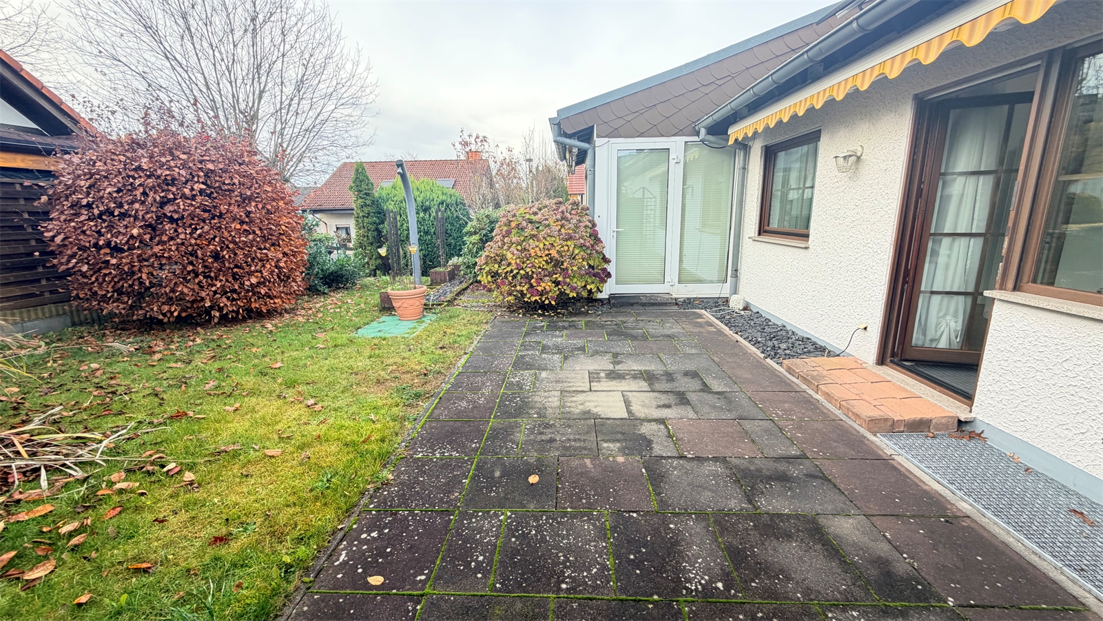 Vom Wohnbereich und Wintergarten besteht der Zugang zu der geschützten Terrasse und Garten, welcher in den Sommermonaten zum Verweilen einlädt.
