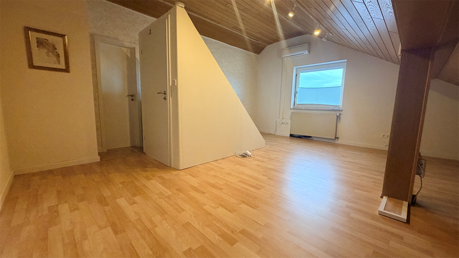 Das ausgebaute, klimatisierte Dachgeschoss mit Studio und angrenzendem Zimmer bietet zusätzlichen Raum für Hobbys oder Gäste.